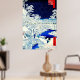 Pedestrians crossing the Meguro Drum Bridge, by Sunset Hill in Edo, during a snowstorm. A page of the series, Meisho Edo Hyakkei (100 Famous Views of Edo). From an original 19th century (1857) woodcut, Meguro Taikobashi Yuhinooka, by Ando Hiroshige. All Rights Reserved © 2012 padre art