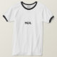 The product was as advertised. The message is succinct and is an eye-catcher. This shirt gets a heap of feedback from onlookers. Most ask you to stand still while they finish reading the definition. They then either give you the thumbs-up or nod any walk away. Either way, its a real conversation starter and so far, no one has disagreed enough with the print to verbalize. The material is fairly light, but the print is stable enough to withstand washes and some activity. A fair deal. Readable and durable.