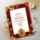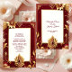 An elegant maroon Indian wedding card for mehndi (mehandi) ceremony. The design has golden floral motifs on the border and a matching template for the reverse. The text used has modern typography and can be easily personalised. A Mehandi ceremony belongs to customs and rituals performed before tying the knot and exchanging the vows of Indian wedding.