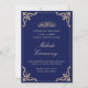 Gold Blue Mehndi Ceremony Invitation. Navy blue background with a antique style design. Made for Muslim bride and groom to celebrate their wedding in the Islamic way. You can edit all the information written on the front of the card. On the extra card, you can add text too. Blank white envelope included.