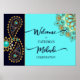 Mehndi blue teal gold jewellery paisley welcome sign template.