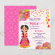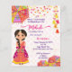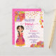 Mehndi cute Indian henna bride with pink and yellow umbrellas and tassels budget Invitation template instant download.