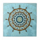 This copper and blue mandala was inspired by Indian mehndi and costumes from Japanese anime. It features layers with lotus petals, leaves, paisley and an ornamental wheel around it all. This tile can be framed to create a trivet or placed inside a wooden gift box lid. Tiles without a frame will also fit inside the large gift box to create a matching set.
