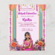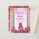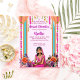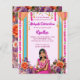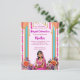 Mehndi Indian wedding template budget invitation with a cute bride cartoon caricature in pink outfit and pink florals.