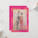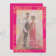 A modern henna style wedding invitation with a pink border and traditional elegant typography.