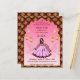 Mehndi maroon pink gold lotus oriental pattern dancing Indian bride template budget invitation with Moroccan lanterns arch frame.