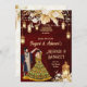 Mehndi and Sangeet maroon background with a dancing Indian bridal couple invitation. With gold flowers, Moroccan lanterns and fairy lights.