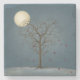 Melancholy Heart Shaped Tree Under the Full Moon Stone Coaster