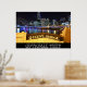 Beautiful colour souvenir photo from Melbourne, Victoria Australia showing bright and colourful city lights from the CBD and reflections in the water of the Yarra River from the famous Queen's Bridge.