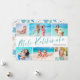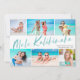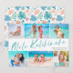 Send cheer this holiday season with these fun, modern styled six photo collage Christmas cards! They're perfect for showcasing favourite photos from your tropical vacation! Typography reads, "Mele Kalikimaka" in light aqua green, and the back of the card contains a matching tropical leaves pattern in blue, mint green, coral, blush pink, beige, and aqua. Simple, modern, and colourful - sure to brighten anyone's day!