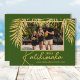 Glamourous faux gold glitter palm fronds on a dark green background highlight your favourite photo on these holiday Christmas photo cards. Mele Kalikimaka and your names on the bottom in chic lettering. High Definition for best quality. MORE COLORS and multi-photo style done for you in our collection.