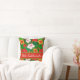 This fun, colourful, Hawaiian holiday design features a festive, eye-catching pattern of lush tropical beach foliage including palm fronds and monstera philodendron leaves, along with bright, beautiful red, white and gold hibiscus flowers. In the lower third of the pillow is a green and gold edged red area that includes the words "Mele Kalikimaka," the Hawaiian way to say Merry Christmas, in white in popular script typography.