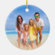 Chic customisable beach family photo Christmas ornament with your favourite tropical photo in the sun. Add a full photograph of your favourite memory from your island vacation to the coast on the front and one on the back. A beautiful coastal holiday ornament gift with pretty blue script over the picture.