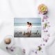 Chic holiday photo card features "Mele Kalikimaka," the Hawaiian Christmas greeting, in gold foil hand lettered script typography as an overlay on your favourite beach or vacation photo.