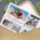 Mele Kalikimaka Hawaiian Christmas Photo Collage Card. Design featuring 5 family photos, typography script Mele Kalikimaka in trendy red lettering, your family name and year.