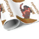 Tropical holiday wrapping paper with Merry Christmas in Hawaiian and grass skirt hula girl dancer print. Fun Hawaii Christmas gift wrap! Gold and white are the main colours.