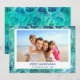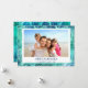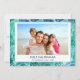 Blue and Green Turquoise incandescent Faux Foil MELE KALIKIMAKA - Merry Christmas Hawaiian Tropical Palm Leaf Family Photo Christmas Holiday Card. The picture and family name can be replaced on this simple beach or coastal vacation Christmas Family Photo Card.