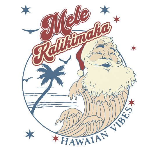 Waves, Santa Claus, stars, palm tree, bird and sea.