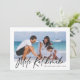 Modern typography photo collage holiday card features 4 photos, Mele Kalikimaka typography script in trendy handwritten lettering, family name and a year on the front. Personalise further with 3 photos and text on the back. Perfect elegant and simple card to wish your family and friends happy holidays.
