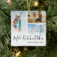 Elegant hawaiian christmas ornament featuring a 3 photo collage of your wonderful family, the saying "mele kalikimaka", two ocean starfish drawings, your family name, and the year.