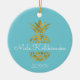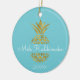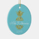 Mele Kalikimaka Faux Foil Gold and Aqua Blue Pineapple Christmas Blue Ornament. This Hawaiian Christmas Ornament is perfect for a tropical Christmas Tree. Please contact designer for matching items.