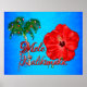 Mele Kalikimaka is Hawaiian for Merry Christmas. Celebrate a nice warm beach Christmas. Mele Kalikimaka decorated with Christmas ornaments and candy canes. A Christmas decorated palm tree and a holiday red Hibiscus flower.
