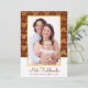 This festive holiday card features your favourite photo in a gold frame on a red and gold hibiscus background with white bottom border and text "Mele Kalikimaka" and your name. Back features gold hibiscus flowers on red background. Perfect for those tropical Hawaiian Christmas!