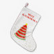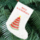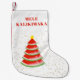 This Christmas Stocking is decorated with a red watercolor watermelon Christmas Tree surrounded by gold stars.
