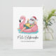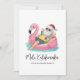 Get into the holiday spirit with this fun and whimsical card featuring a cartoon Santa Claus relaxing in a bright pink flamingo floaty. Dressed in a festive Hawaiian shirt, red shorts, and his classic Santa hat, this laid-back Santa adds a playful twist to your holiday greetings. The floaty bobs in soft teal blue water, bringing a sunny, lighthearted feel to the design.