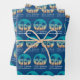 These cute custom Hawaiian Christmas wrapping paper sheets feature a tropical beach sunset on a cool blue background with a drawing of coastal palm trees against a seaside sunset. Mele Kalikimaka written in cursive typography on these pretty personalized holiday gifts.