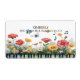A whimsical watercolor illustration depicting a piano keyboard intertwined with vibrant red, yellow, and white wildflowers. Butterflies flutter gracefully above, accompanied by floating musical notes, while a tiny bird perches among the blossoms. Soft splashes of colour drip from the piano, blending into a dreamy, artistic background that captures the harmony between music and nature.