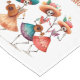 Adorn your table with a vibrant and personalised celebration of Día de Muertos using this customisable table runner featuring a delightful illustration of three dancing Catrinas! Above or below the cheerful artwork, you can add a family name, a welcoming message, a special date, or any text you desire to create a unique centerpiece for your gathering. Each skeletal figure is adorned with colourful floral hats and flowing dresses in cheerful hues of peach, teal, and red, bringing the joyful spirit of this Mexican tradition to your dining experience with your personal touch.