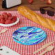 Cobalt blue and white fluid art digital pour painting paper plate. Great for a birthday or boy's baby shower.