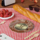 Melted chocolate cocoa fudge swirl dessert brown paper plate