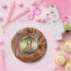 Melted, swirly, rich brown milk chocolate with a gold seal in the centre for your monogram. Yummy. The whole plate can be personalised. For all chocolate lovers.