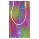 Features an abstract melted glass design in rainbow colours. Personalise with an initial.