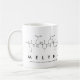 Melyna spelled out in amino acids as M E L Y N A (Methionine Glutamic acid Leucine Tyrosine Asparagine Alanine) on a mug for the scientist in you.