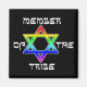 Are you a member of the tribe? "Member of the tribe" in hebrew-style black letters around a colourful rainbow star of David.