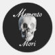 Memento Mori "Remember Your Death" design. Features a skull in a grayscale sketched style with a slight grunge/distressed look for a vintage feel. Makes a good gift for your traditional Catholic friends.