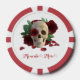 Memento Mori text can be customised by you. A human skull with red roses around it and in one eye socket.
