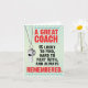 * INSIDE GREETING: "Thank you to a great coach!" COVER - A great coach is lucky to find, hard to part with, and always remembered.