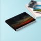 A beautiful sunset sky landscape with silver foil memorial "celebrating the life of" funeral keepsake guest book. Simply customize the text and create your own customized memorial guest book. A thoughtful remembrance guest book for funerals and memorials.