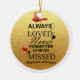 This exquisite memorial Christmas ornament, titled ‘Always Loved, Never Forgotten, Forever Missed,’ makes a poignant addition to your Christmas tree or a heartfelt memorial gift to cherish the memory of those dear to you who have passed on. Cardinals, often seen as a symbol of a loved one’s presence, add an extra layer of meaning to this piece.