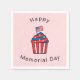 Celebrate the bravery of the valiant men and women who fought to keep our nation free with this cute minimalist design patriotic cupcake Paper Napkin on pink star sprinkled background. Popular font typography "Happy Memorial Day" can be easily customised with your own wording.