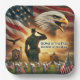 These high-quality paper plates feature a bold design with the phrase "HOME OF THE FREE BECAUSE OF THE BRAVE" and patriotic symbols. They're durable and disposable for easy clean up