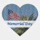 This heart sticker has a tiled mosaic with the USA flag, blue sky and green palm trees. It has also a white semi transparent stripe and the expression: "Memorial Day.” This sticker makes an elegant gift for sealing gifts or envelopes. You can match this sticker with envelopes, stamps, cards, and postcards for a unique mailing experience.