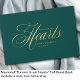Customer specific, memorial, elegant, scripted font "Forever in our Hearts" gold-foil handwriting font, green funeral guest book. Availible in gold, copper and silver foil.