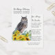 Memorial Funeral Prayer Card Owl Sunflowers