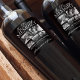 Personalised commemorative wine labels featuring a elegant black background that can be changed to any colour, 5 photos of your lost loved one, the text "in loving memory", their name, birth/death dates, a love heart, and the sympathy saying "please raise a glass".