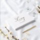 Customer specific, memorial, elegant, simpel "In Loving memory" gold-foil handwriting font, white funeral guest book. Availible in gold, copper and silver foil.